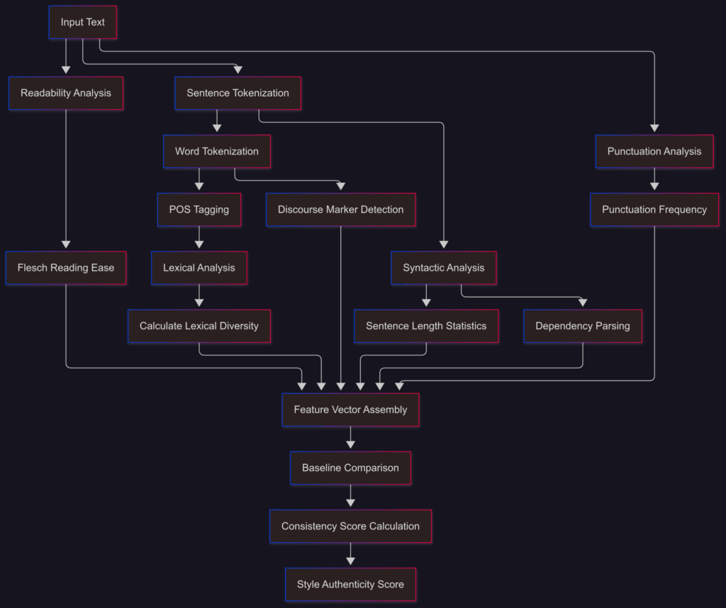 Technical Implementation: A comprehensive stylometric analysis using multi-dimensional linguistic feature extraction for author voice authentication.