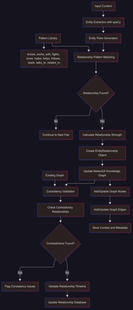Technical Implementation: Dynamic knowledge graph construction using for entity relationship modelling and consistency validation.